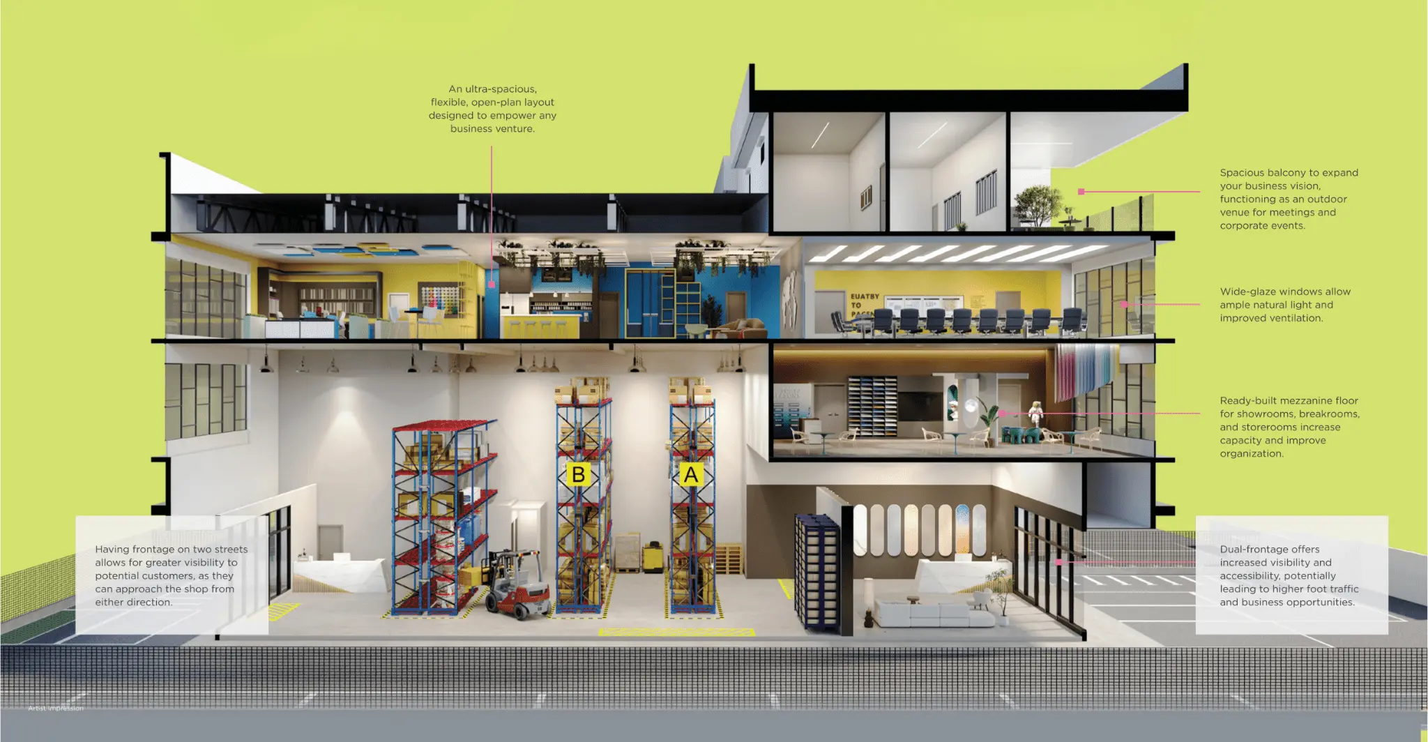 Ideal for warehouses, SMEs, logistics centres, co-working spaces, showrooms, and more.