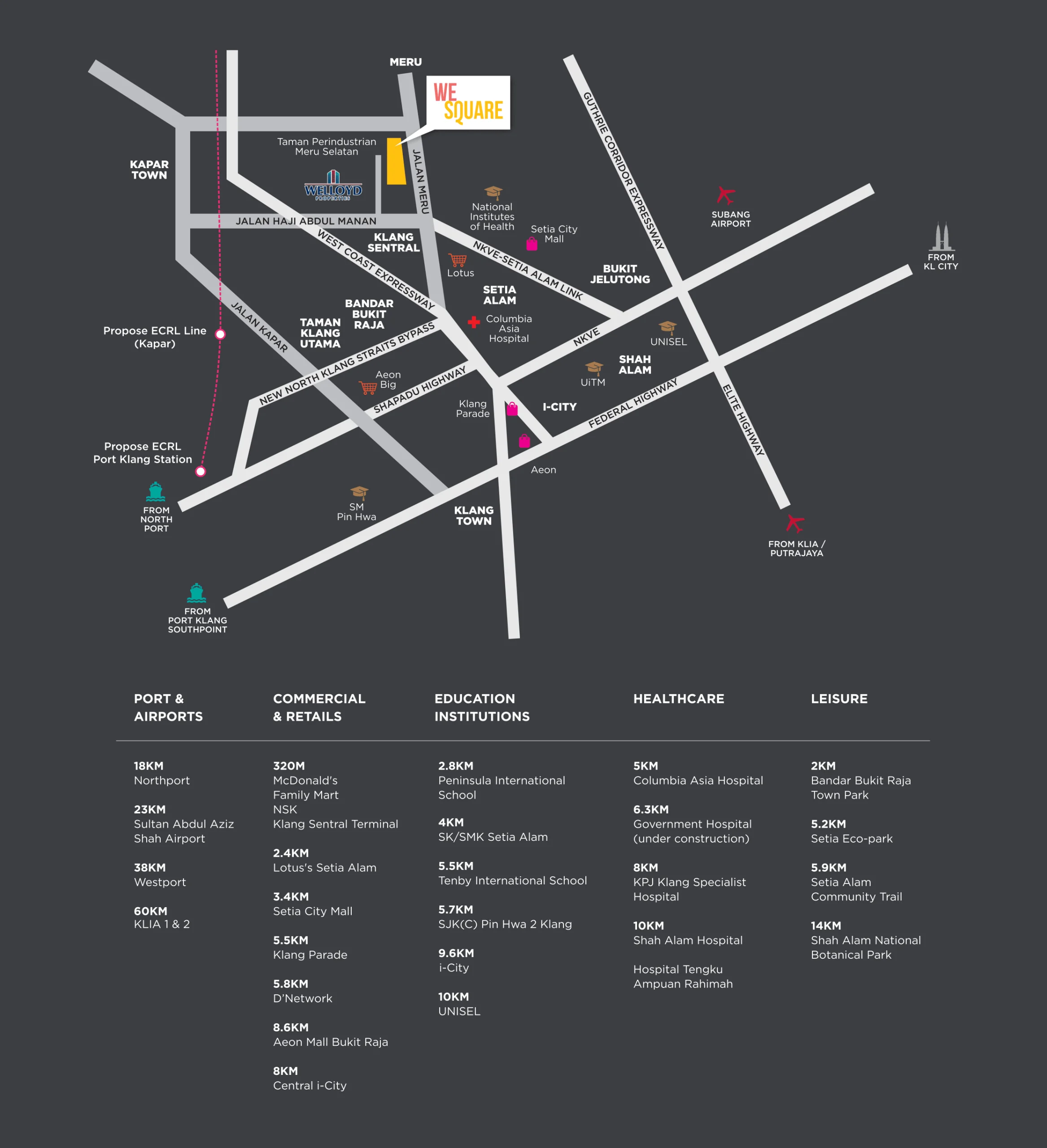 WeSquare boasts exceptional connectivity to major highways, significantly enhancing accessibility to airports, seaports, and beyond Klang Valley region. With this robust network of options, customers and business owners of WeSquare can enjoy seamless travel and connectivity throughout Klang Valley.