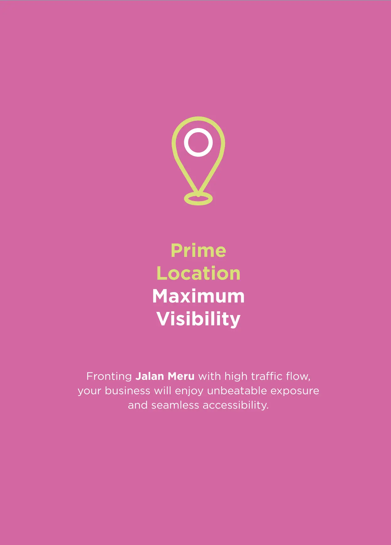 Here, you’ll experience unmatched visibility and foot traffic, making it the perfect location for your venture. Nested in the heart of established neighbourhoods, including Klang Sentral, Meru Town, Setia Alam and Bandar Bukit Raja.